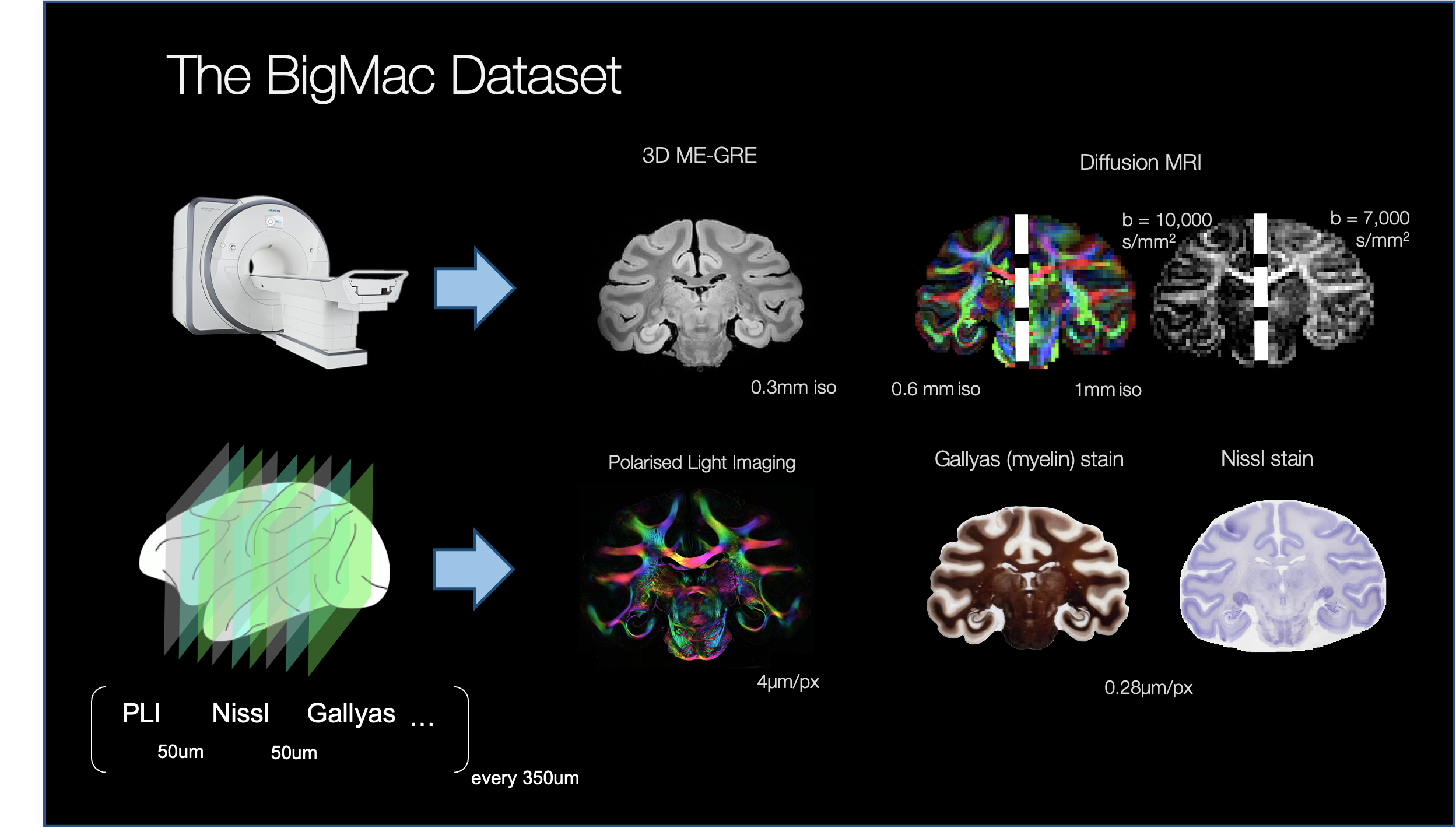 [3] Howard AF, et al. The BigMac dataset: an open resource combining multi-contrast MRI and microscopy in the macaque brain. bioRxiv, 2022