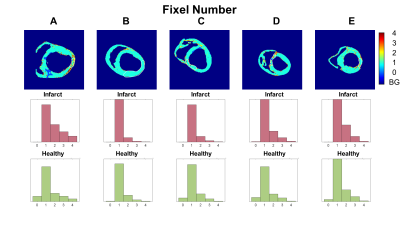 Voxel-based analysis allowed for the comparison of infarct and healthy myocardial regions using FN, AFD and CX, which to our knowledge are novel measurements. Unlike previous literature, FA values were not significantly different in the infarcted myocardium, perhaps due to the inclusion of the infarct border zone within the healthy region, as opposed to comparing the infarct region with a remote region. Using these voxel-based analysis metrics, the AFD in the infarct region significantly increased. This may be indicative of fiber populations from healthy regions being funneled into the smaller infarct region, leading to an increase in density. Alternatively, the AFD may be measuring properties of the aligned3 replacement collagen fibers in the infarct.Conclusion