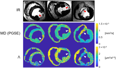 diffusivities is apparent for the lesioned regions of the infarcted hearts with