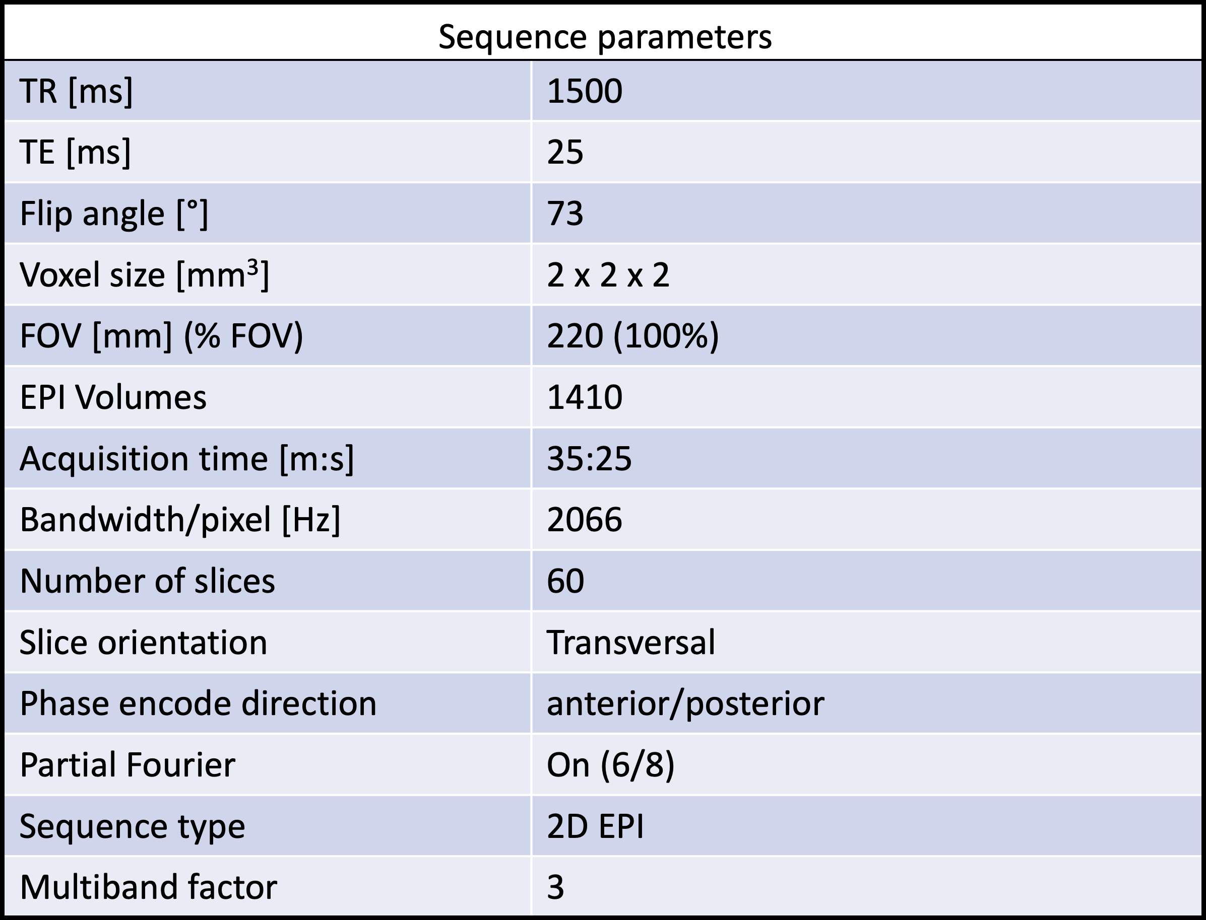 All MRI data were collected on a 7T MAGNETOM Terra scanner (Siemens Healthcare, Erlangen, Germany) and a single-channel transmit and 32ch receive head coil (Nova Medical Inc., MA, United States). The visual and motor experiments were performed in the same fMRI scan of approximately 35 minutes. Each session allowed for 100 visual stimuli (and concurrent motor tasks) but in a pseudo-random order only 80 of these were given. A baseline signal was extracted from the 20 time-points without visual stimulus or motor response. We utilized a 2D EPI3 sequence combined with multiband acceleration factor of 37;8. Relevant sequence acquisition parameters are listed in Table 1. Assuming a BOLD response lasting 20 seconds, 14 EPI volumes of 60 slices were collected after each stimulus. At the beginning of each experiment, 5 dummy scans were collected, resulting in a total of 1410 EPI-volumes.