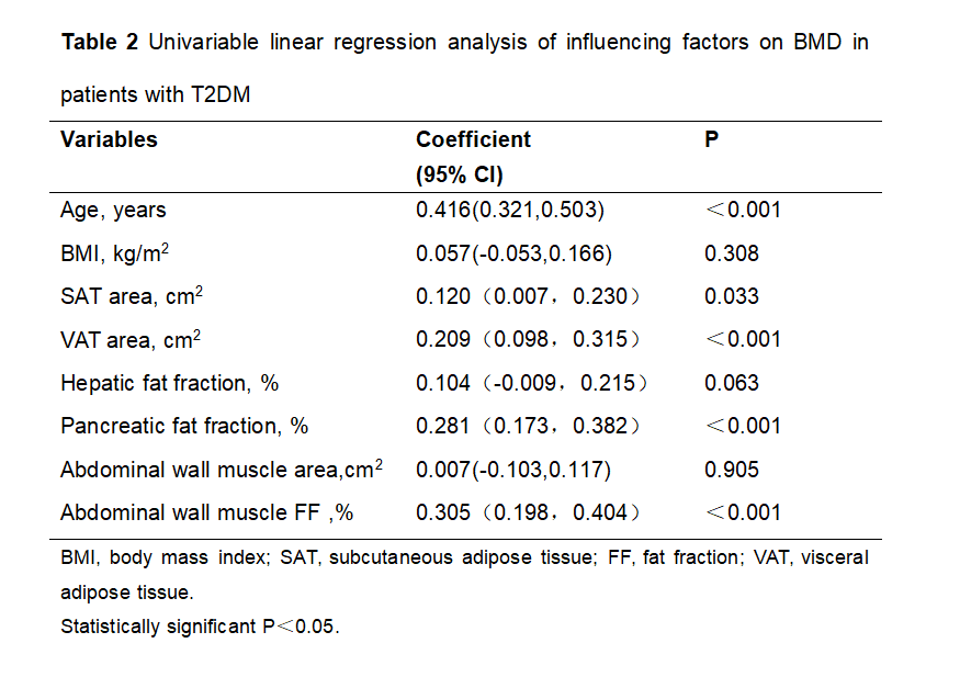 area,Pancreatic FF and Abdominal wall muscle FF was positively correlated with BMD in diabetes patients. Our study had