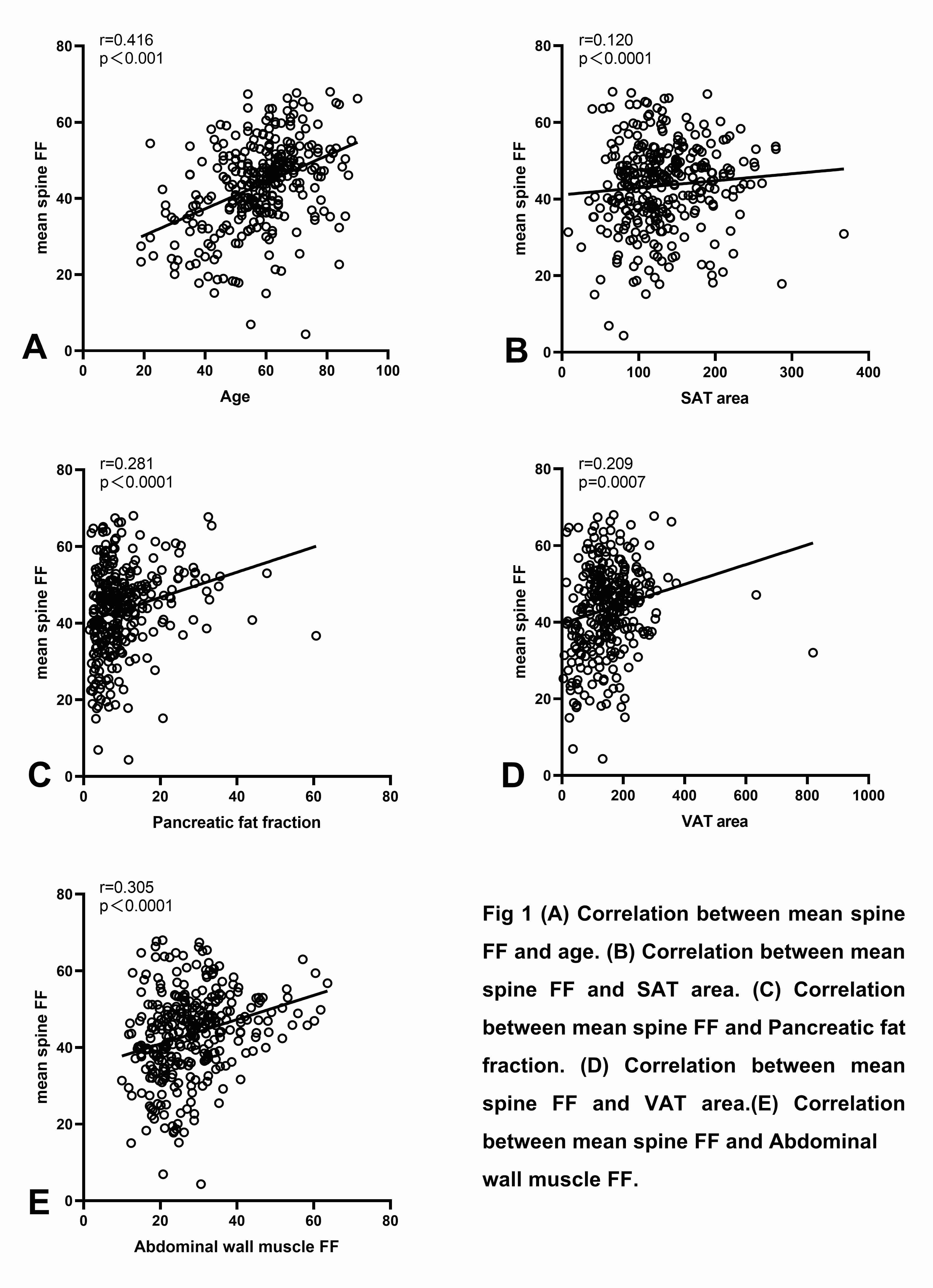 0.001)and Abdominal wall muscle FF(r =0.305, p< 0.001)were