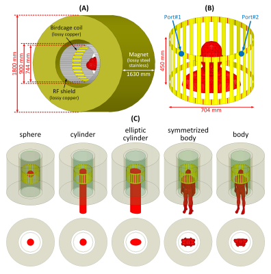cylindrical RF shield, and 32-rung high-pass CP-driven birdcage coil. Figure 1C