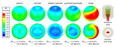 of the load. With a body load, the peak E-fields on a 10m radius surface rose