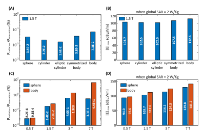 from 0.5T to 7T increased the body-load radiated power 4.6×104