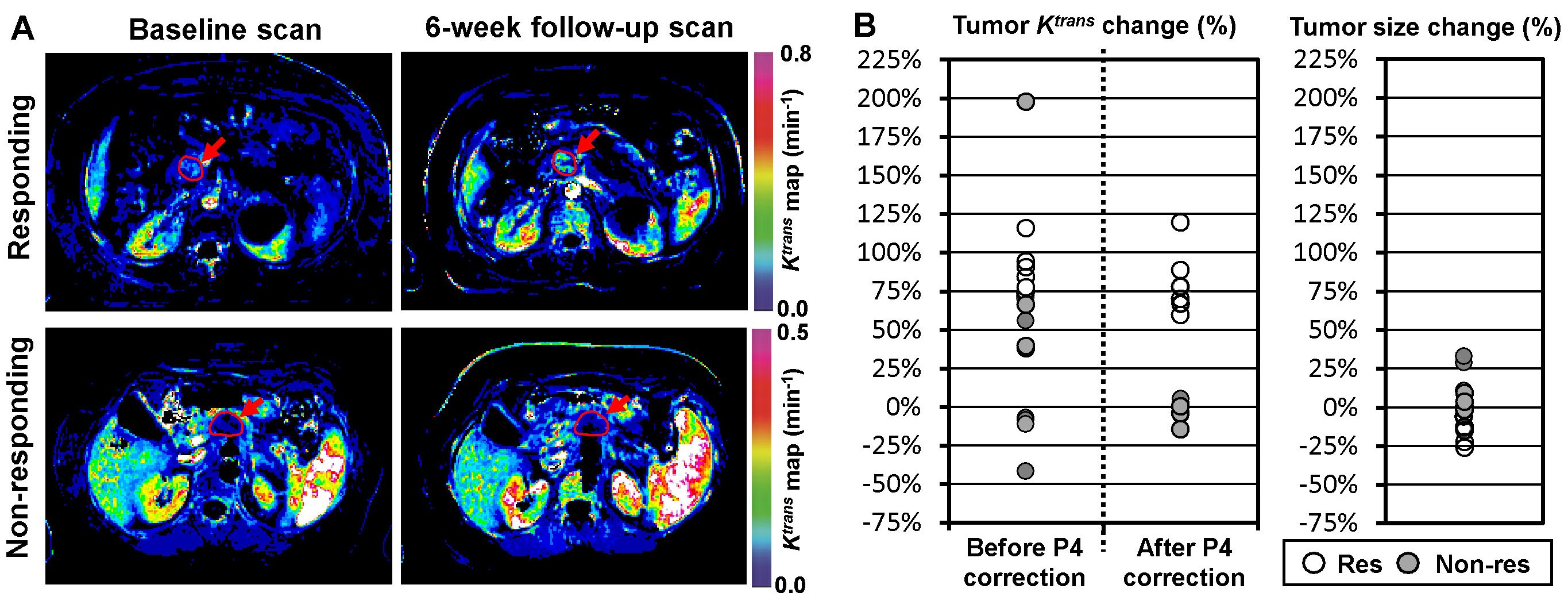 non-responding tumors (-4±8%, p<0.0001). However, before P4-based error correction, the Ktrans changes in the
