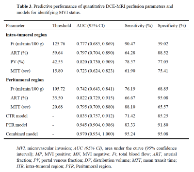 perfusion parameters could predict the MVI status in both ITR and PTR.