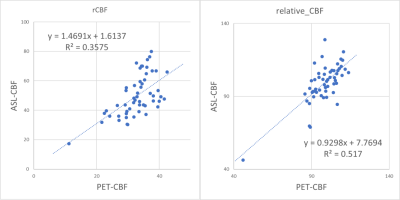 between ASL-CBF and PET-CBF (R2=0.36 and 0.52, in absolute and