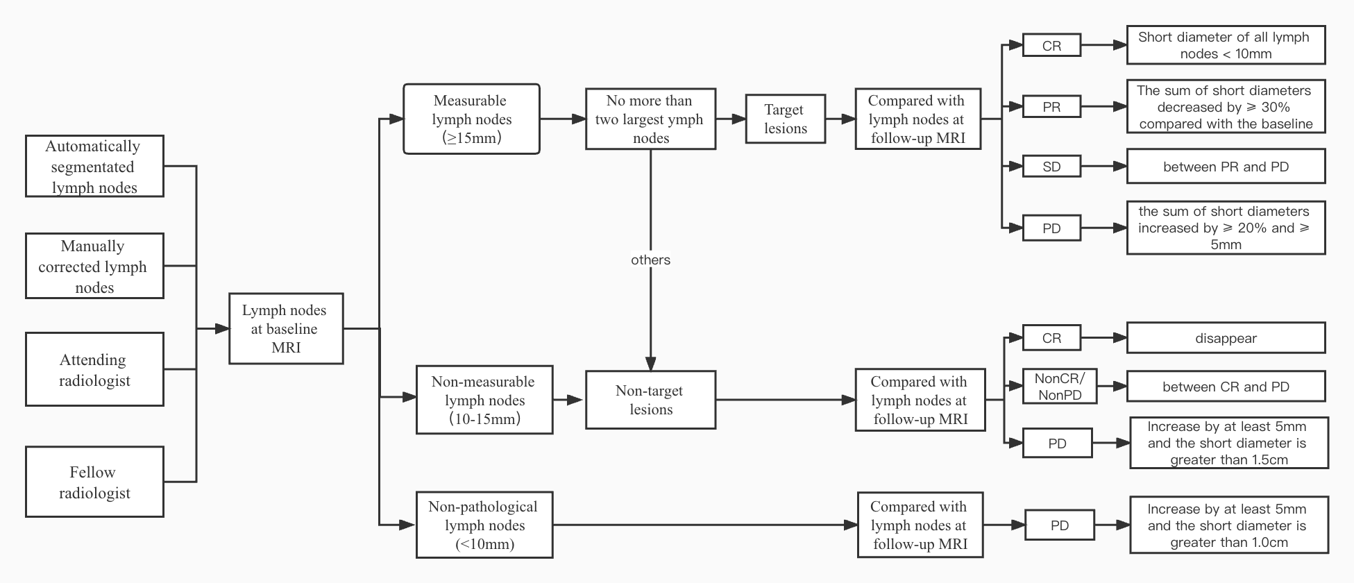Conclusion: The deep learning-based semiautomated algorithm showed high accuracy for the treatment response assessment of pelvic lymph nodes and demonstrated comparable performance with radiologists.Acknowledgements