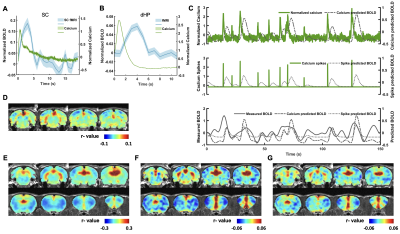 In this study, we examined the coupling between the BOLD signal and neural spiking activity in awake rats at both evoked and resting state. We observed a robust visual evoked increase in calcium signal in the SC (Figure 3A). The calcium-derived BOLD map demonstrated a region-specific correspondence between calcium-derived and measured BOLD signal (Figure 3D). These confirm the validity of this platform in awake rats.