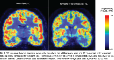 Many imaging techniques have been developed to study the structural and molecular changes associated with neuropathology. While MR techniques reveal global structural changes in the brain, there is a critical need to understand dynamics of synaptic density change in neuropathological disorders. The advent of a novel PET tracer targeting synaptic vesicle glycoprotein 2A (SV2A) offers a promising avenue to study in-vivo synaptic density changes1.