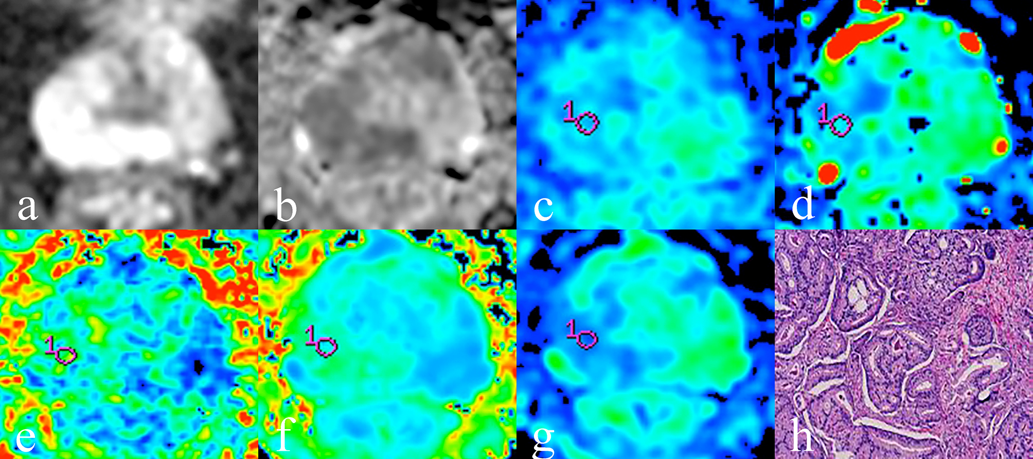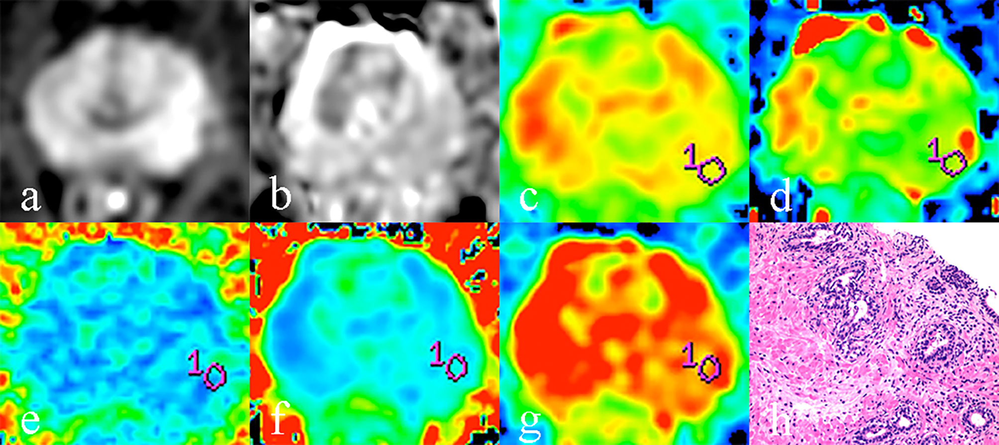 Prostate cancer (PCa) is the most common non-cutaneous cancer in man, the incidence rate of PCa increased with age, about 85% of PCa patients are older than 65, and less than 1% are younger than 50(1). In order to select the appropriate treatment options and predict the prognosis of PCa patients, the NCCN Guidelines of PCa have incorporated a risk stratification scheme that uses a minimum of stage, Gleason grade, and prostate specific antigen (PSA) to assign patients to risk groups, including very low-, low-, favorable intermediate-, unfavorable intermediate-, high- and very high-risk group(2). For intermediate risk group PCa, some studies have showed that unfavorable intermediate-risk group (unFIRG)PCa patients had worse PSA recurrence-free survival and higher rates of distant metastasis and PCa-specific mortality than the favorable intermediate-risk group (FIRG) PCa patients(3). In recent years, some studies have demonstrated that diffusion weighted imaging (DWI) or advanced DWI could differentiate Gleason pattern ≤ 3 + 4 PCa and Gleason pattern ≥ 3 + 4 PCa. To our knowledge, the role of advanced DWI in the sub-differentiation of intermediate risk group PCa has not been reported. Therefore, the purpose of this study is sub-differentiation of intermediate risk group PCa using intravoxel incoherent motion (IVIM), stretched exponential model, and diffusion kurtosis imaging (DKI) to aid the treatment decision process.Methods
