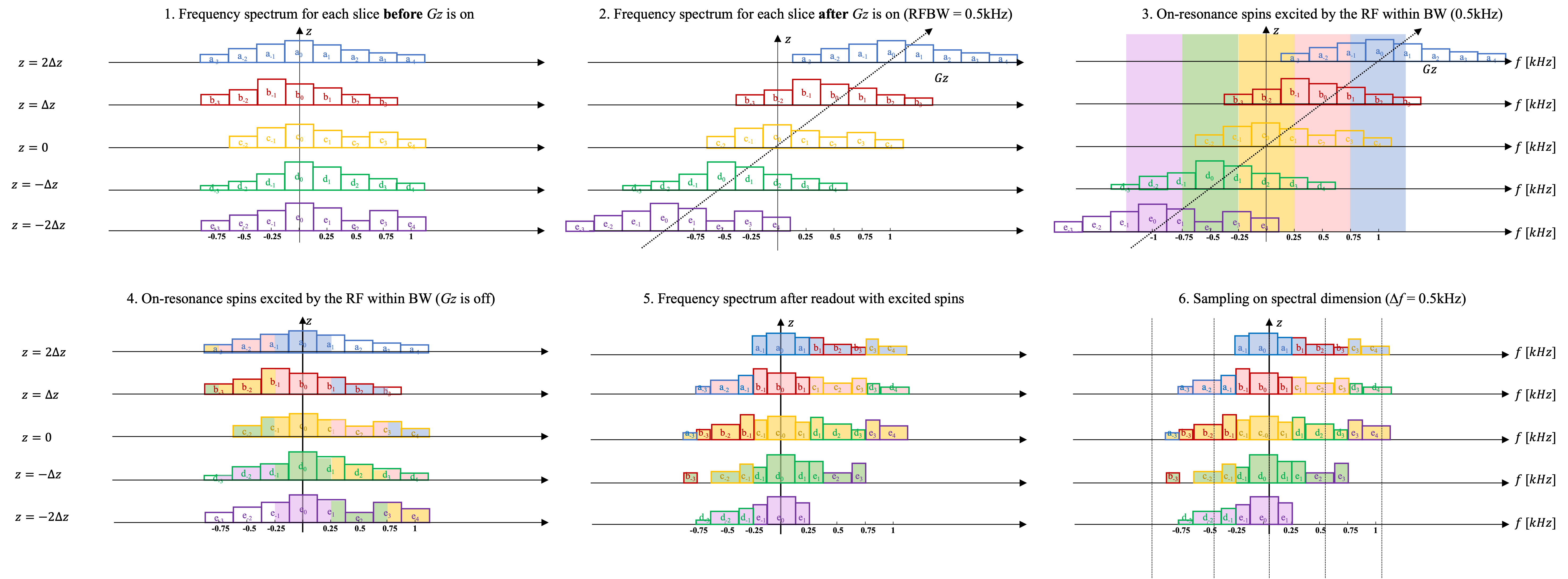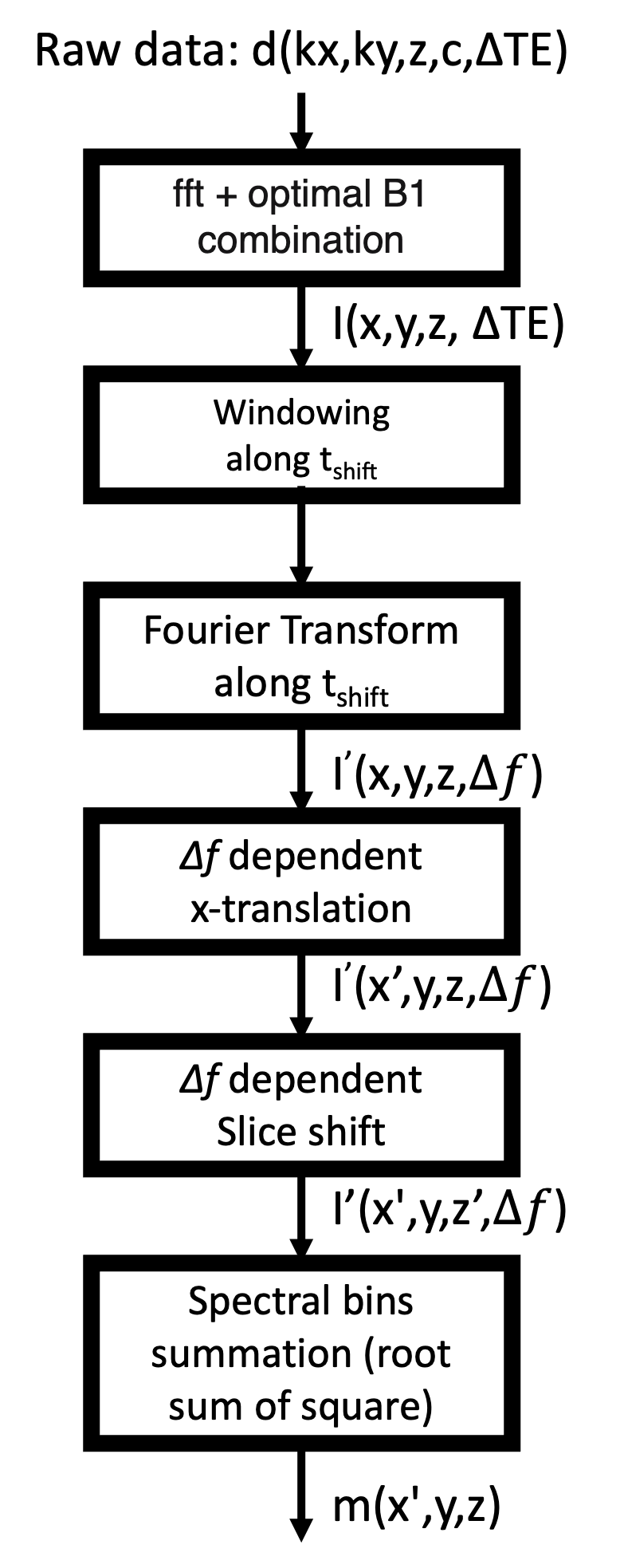 Figure 2 illustrates the SEMSI reconstruction using a set of multiple ∆TE data. With a finite number of ∆TE and a limited range of ∆TE, each ∆f image represents a sampled spectral component for each slice as illustrated in Figure 1.6, which can be used for x-translation and slice shift.