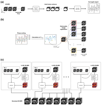 The overview of the 4D-MRI workflow involving the