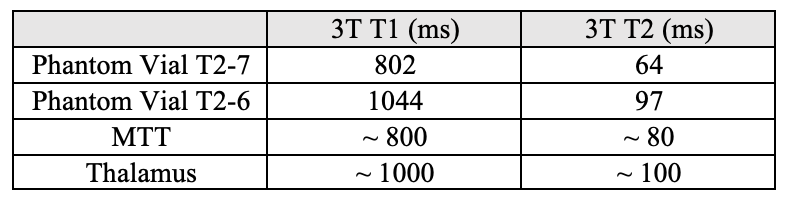 [10] Wansapura, J.P., Holland, S.K., Dunn, R.S., Ball, W.S.J., 1999. NMR relaxation times in the human brain at 3.0 tesla. J Magn. Reson. Imaging, 9(4):531-8.