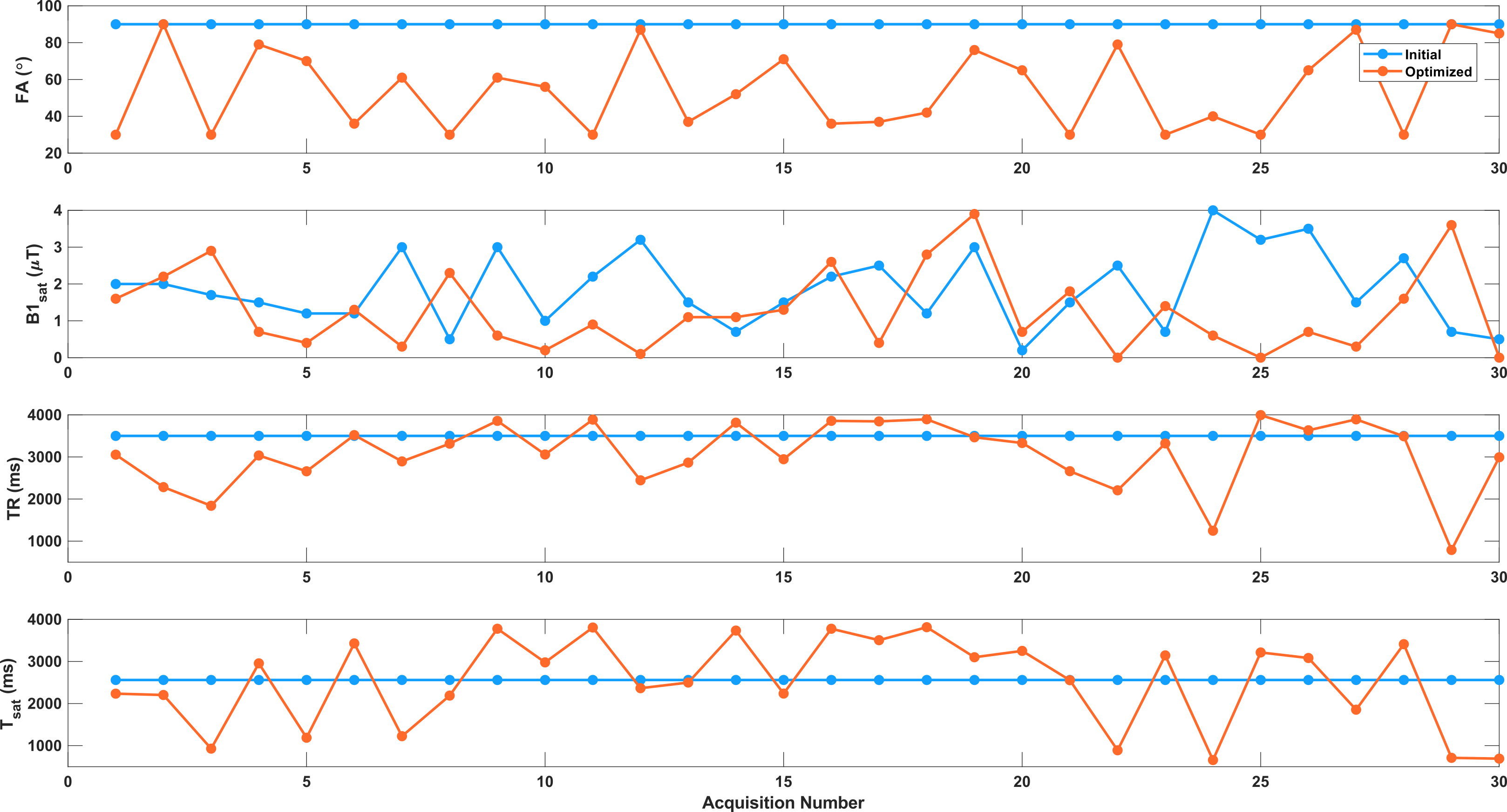 [16] P. K. Lee, L. E. Watkins, T. I. Anderson, G. Buonincontri, and B. A. Hargreaves, “Flexible and efficient optimization of quantitative sequences using automatic differentiation of Bloch simulations,” Magnetic resonance in medicine, vol. 82, no. 4, pp. 1438–1451, 2019.