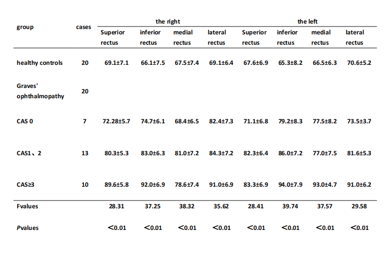 Table Ⅲ. Difference in PD values of extraocular muscles between patients with Graves' ophthalmopathy and healthy controls