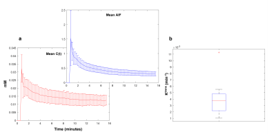 To evaluate the correlation of Ktrans computed from WEPCAST and DCE-MRI, Pearson’s correlation co-efficient and a linear regression model were used. Also, a 2-tailed student’s t-test was performed to test the significance level. Co-efficient of variation (CoV) was used as a metric to evaluate the inter-subject variations of mean C(t), AIFs and Ktrans.Results and Discussion