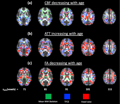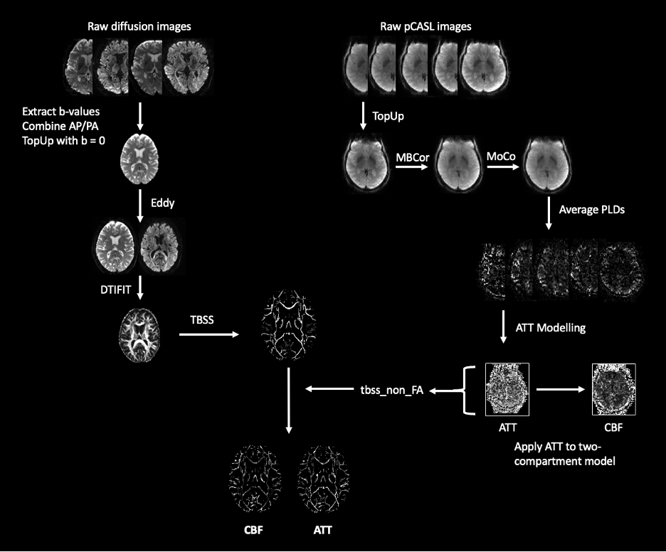 White matter perfusion has been difficult to measure with arterial spin labeling (ASL) MRI due to the elongated arterial transit times of white matter. Here, we identified changes in white matter cortical hemodynamics associated with age and between sex for the first time using multi-delay pseudo-continuous ASL with tract-based analyses in a large typically aging cohort. We found reductions in white matter CBF and increases in white matter ATT with advancing age, as well as widespread sex differences across tracts. This work serves as the first step towards understanding the relationship between white matter physiology and age-related structural decline.1. Hase, Y., Ding, R., Harrison, G., Hawthorne, E., King, A., Gettings, S., Platten, C., Stevenson, W., Craggs, L.J. and Kalaria, R.N., 2019. White matter capillaries in vascular and neurodegenerative dementias. Acta neuropathologica communications, 7(1), pp.1-12.