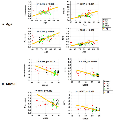 associated with HFC values, but age was positively associated with HFC values (Fig 1b). Figure 2 shows the results of correlation analyses between age or MMSE