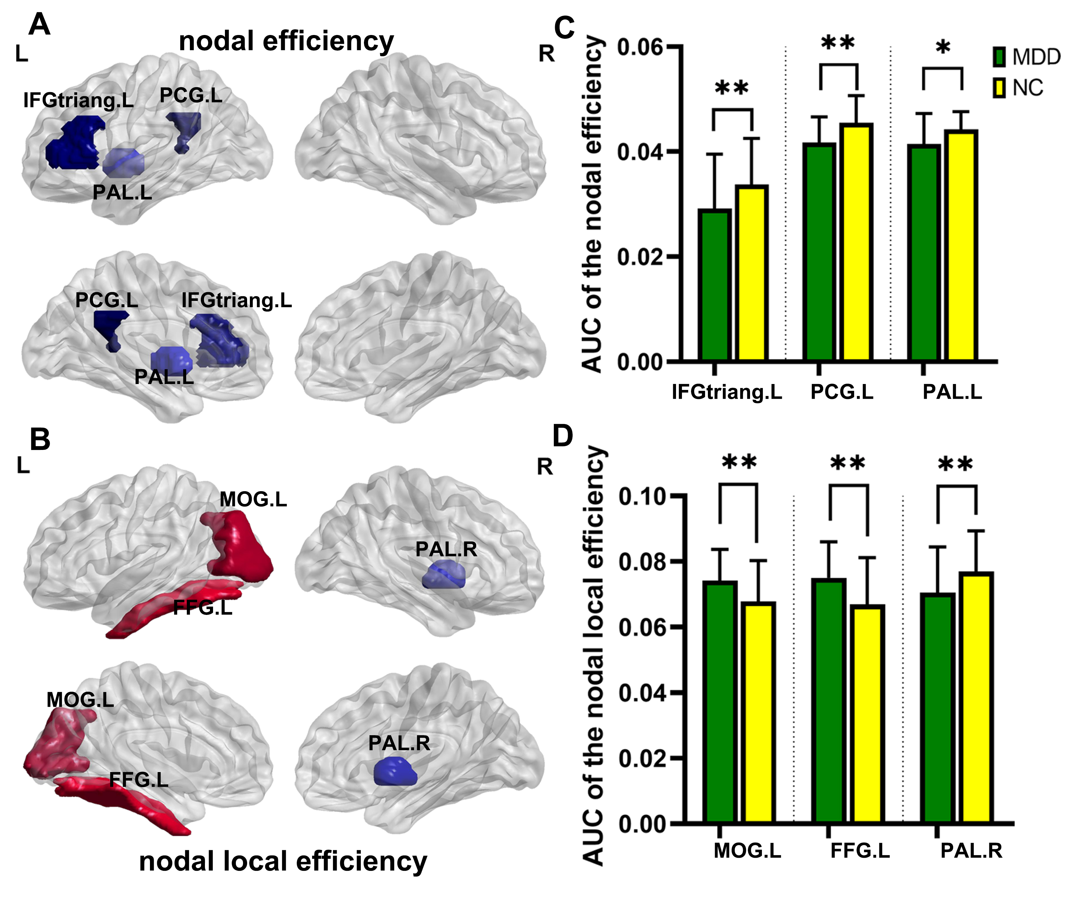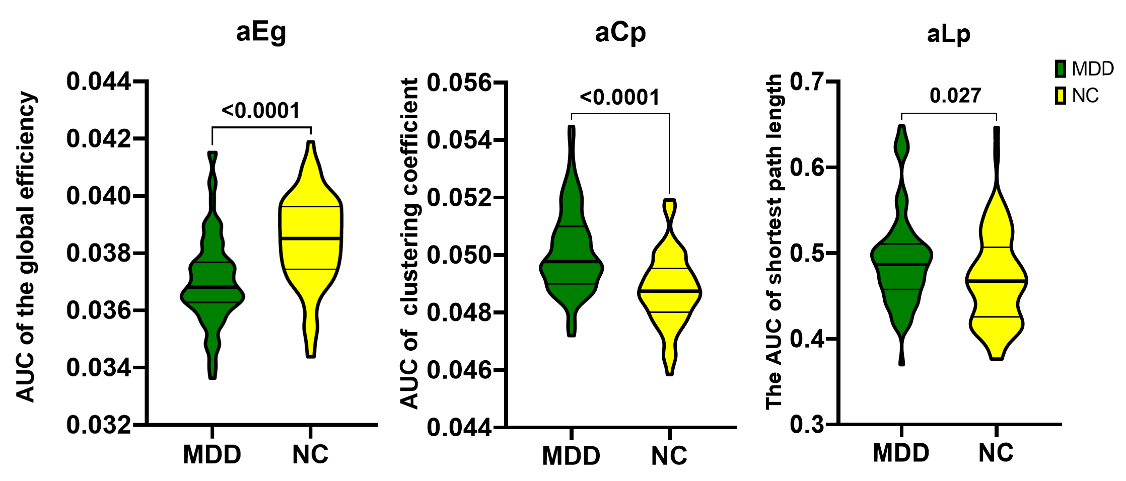 networks. Compared with NC, MDD showed significant increased Lp, Cp and decreased