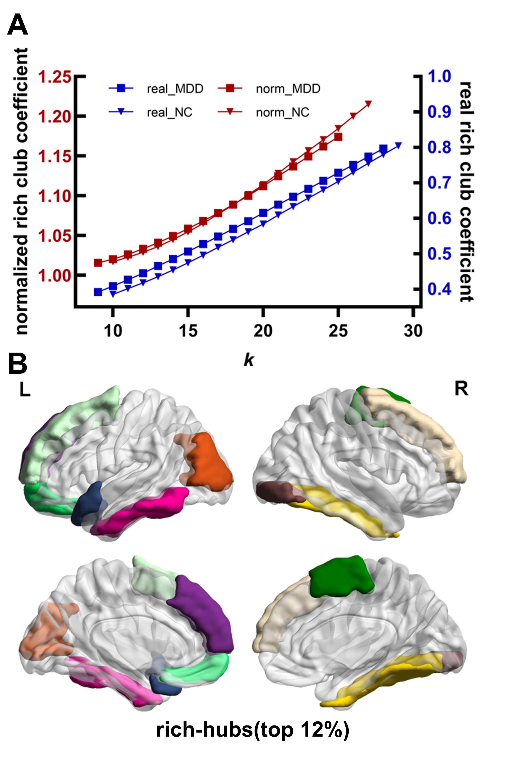 rich-club organization(Figure 3). The rich-club and feeder connections were significantly