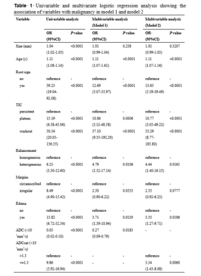 image features for malignancy (OR, 10-37). Malignant tumors demonstrate the