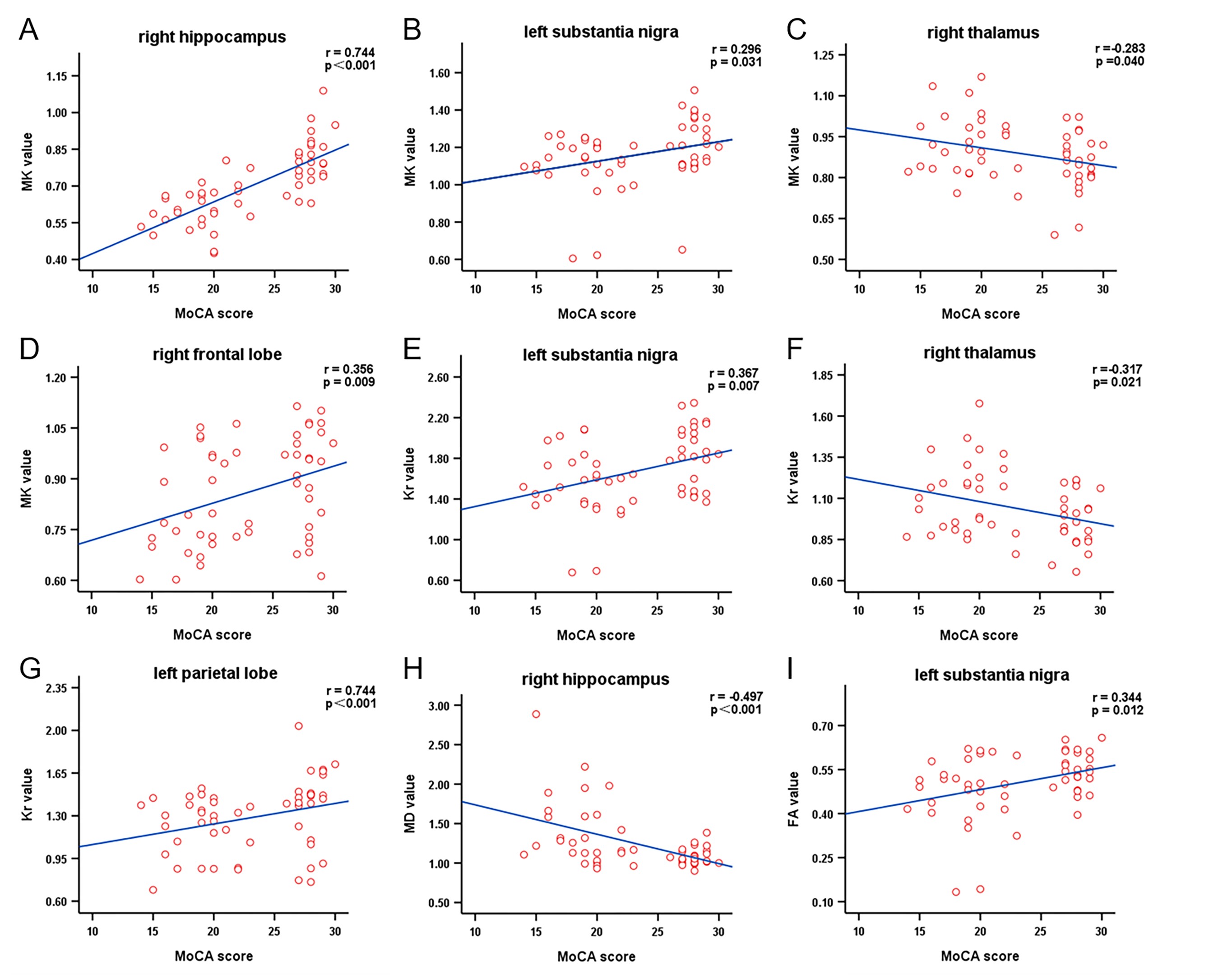In this work, we focused on the Al-exposed workers and confirm the findings that DKI can discriminate MCI from NC, furthermore we assess the severity of cognitive impairment in Al-exposed workers, and find the MK, Kr, MD and FA values are correlated with MoCA scores,which may provide quantitative imaging biomarkers for Al-exposed MCI workers.[1] Batum K, Çinar N, Sahin S, et al. The connection between MCI and Alzheimer disease: neurocognitive clues [J]. Turk J Med Sci, 2015, 45(5): 1137-40. doi:10.3906/sag-1404-179.