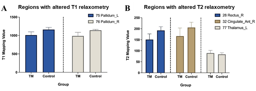 The lower T2 value of anterior cingulate cortex found in the β-TM