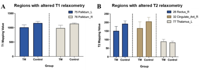 brain regions were showed in Fig. 2. The T1 mapping value of the
