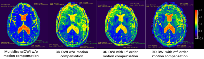 In this pilot study, 3D DWI with 2nd-order motion-compensated