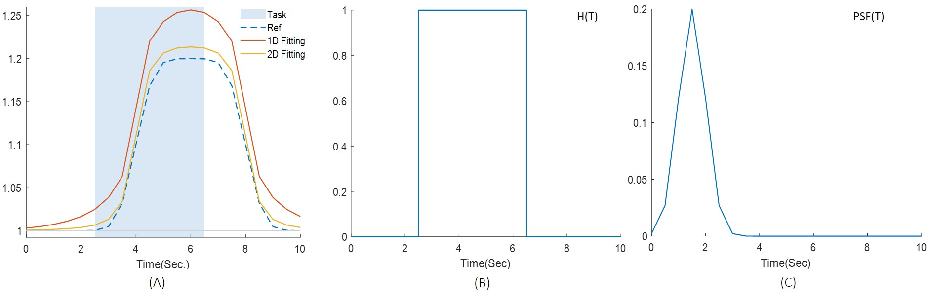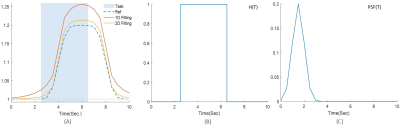 temporal amplitude of Glu and the histogram of the estimated are plotted in Fig. 2(A) and 3, respectively. The external stimulus $$$H(T)$$$ and point-spread-function $$$PSF(T)$$$ used in this work are shown in Fig. 2(B)