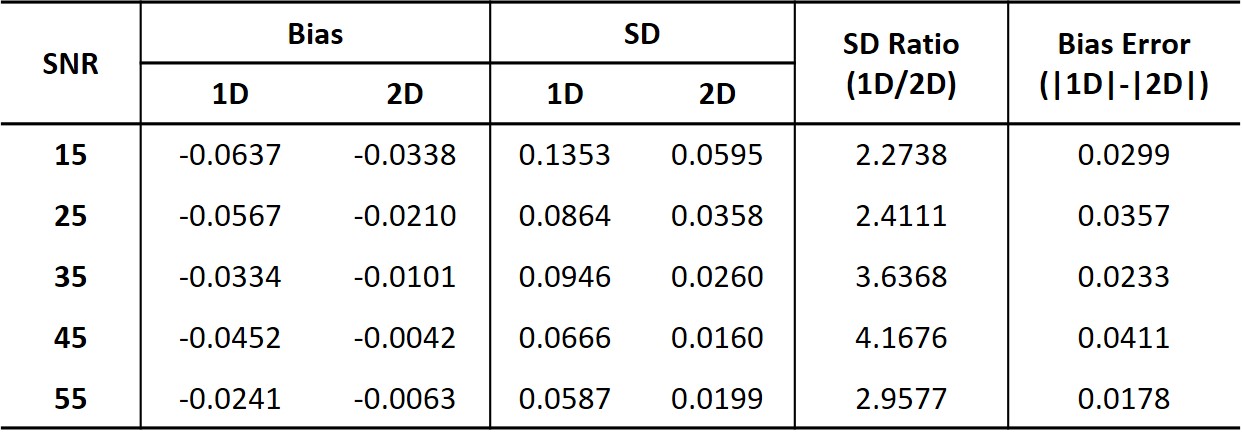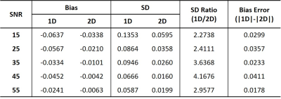 of the added noise. For each SNR, the precision (standard deviation) and bias