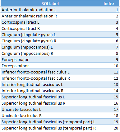 MRI data from 620 healthy adults (age range: 18-88 years, 315 females) were included in this study. Diffusion data were collected along 30 gradient directions for two b-values (1000 and 2000 s/mm2), plus three b=0 images. Other acquisition parameters were: TR=9100ms, TE=104ms, voxel size=2mm isotropic, FOV=192mm × 192mm, and 66 axial slices, total acquisition time of 10 minutes and 2 seconds.