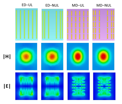 Fig. 1C) increased the ratio. Figure 2 shows the |H| and |E| fields for the