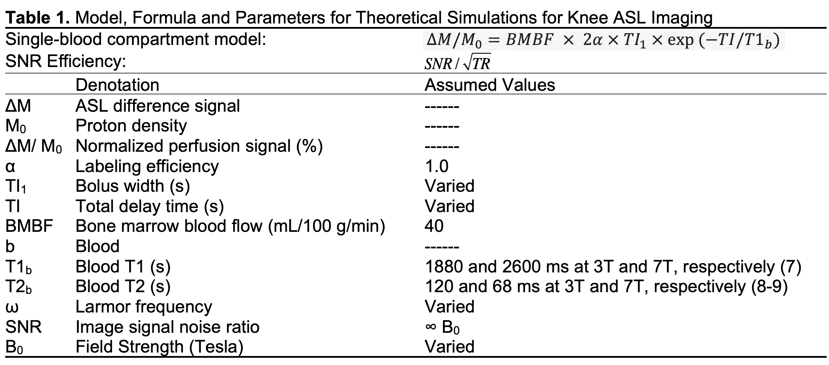 theoretical simulations of the knee ASL imaging at 3T and 7T utilized the same