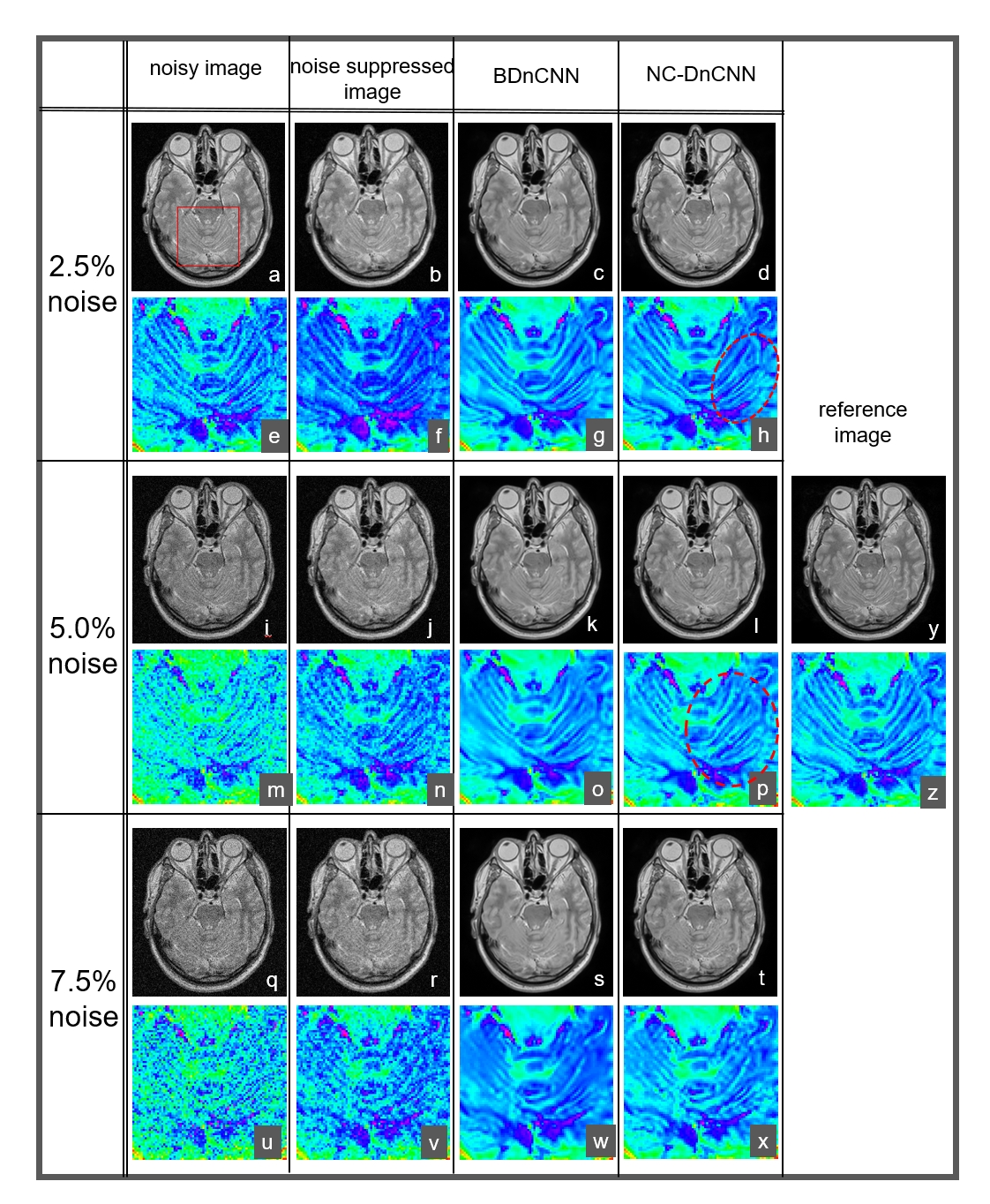 while NC-DnCNN images have good preservation of detail structure, and are close to the reference image. In the