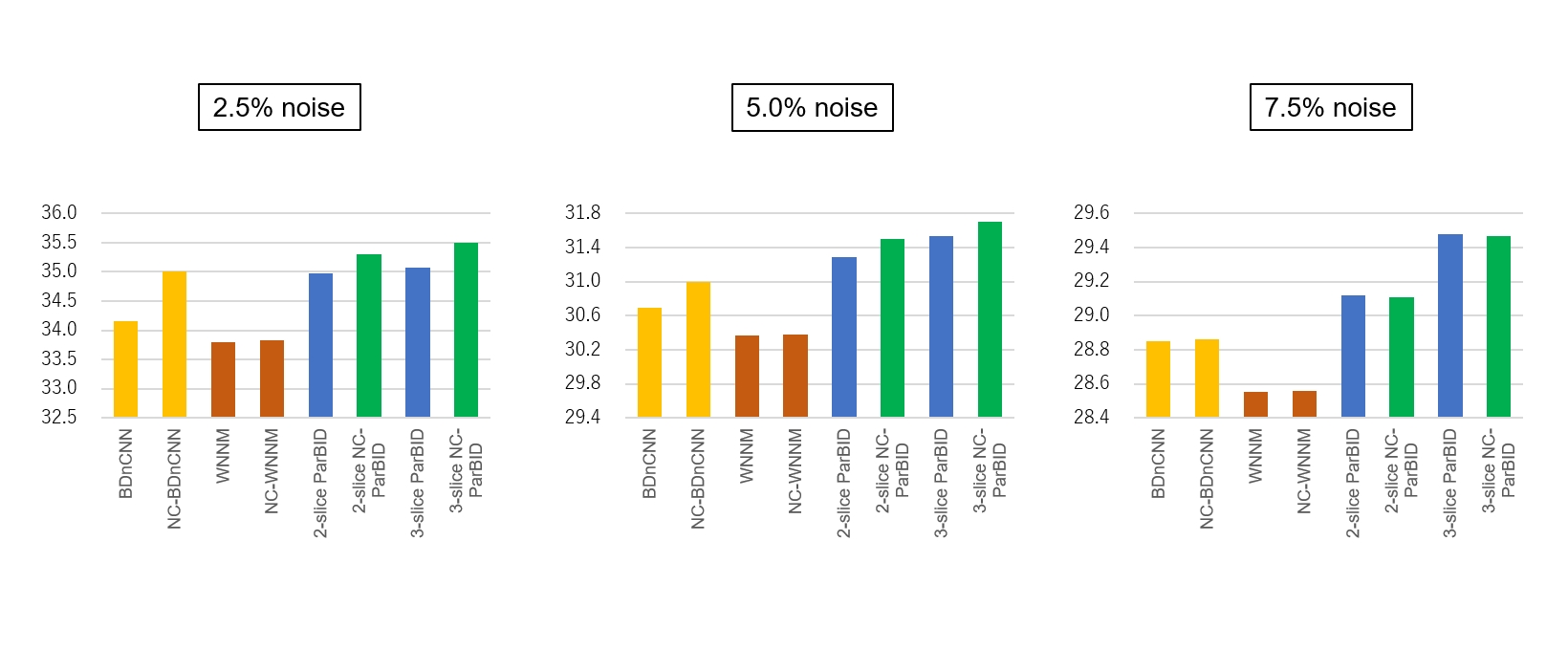 respectively. ParBID was most effective at 2.5% noise level.