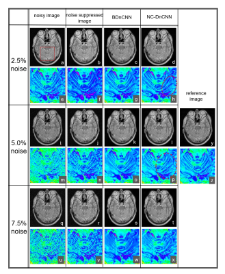 the training of the Blind DnCNN network, 900 MR images (T1W, T2W, PDW) were