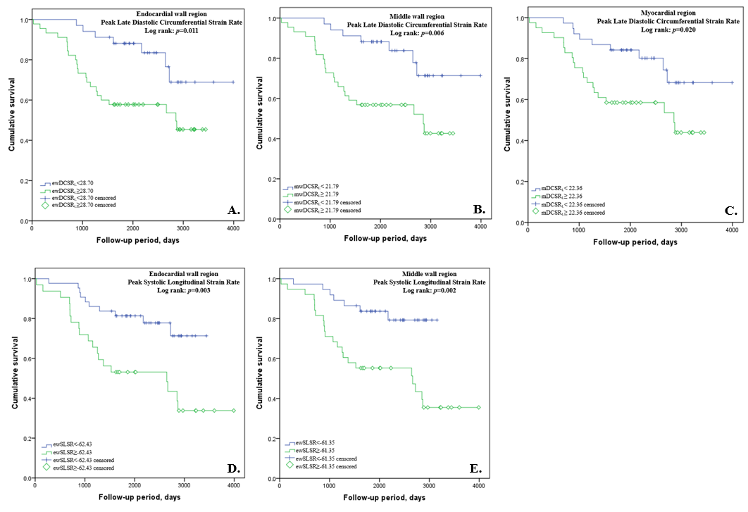 end of this study. Kaplan-Meyer curves showed RV layer-specific Peak Late Diastolic Circumferential Strain Rate (DCSRL), Peak Late