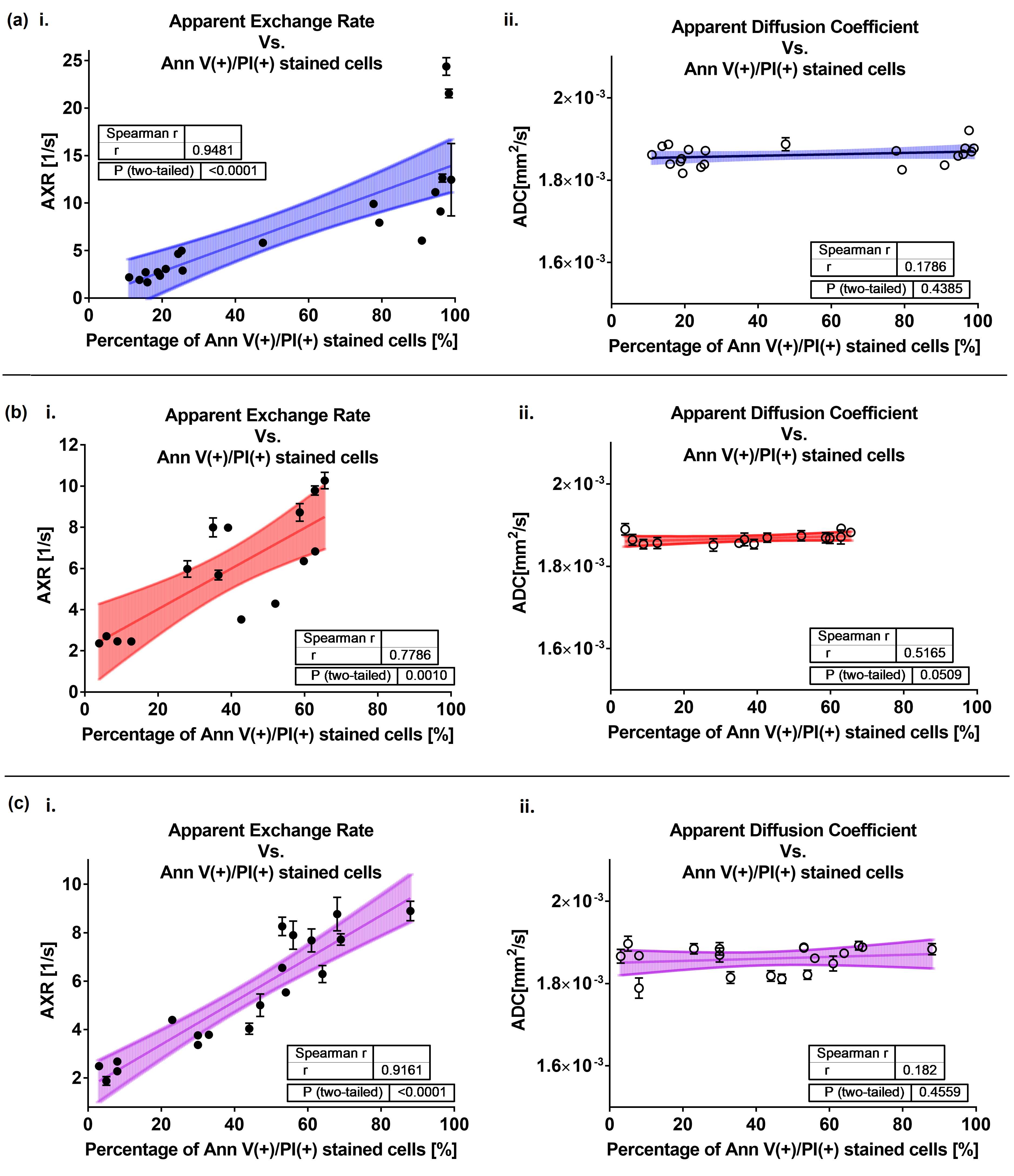 with established markers of cell death. AXR was correlated in vitro with the fluorescence markers Annexin V/PI and in vivo with apparent diffusion