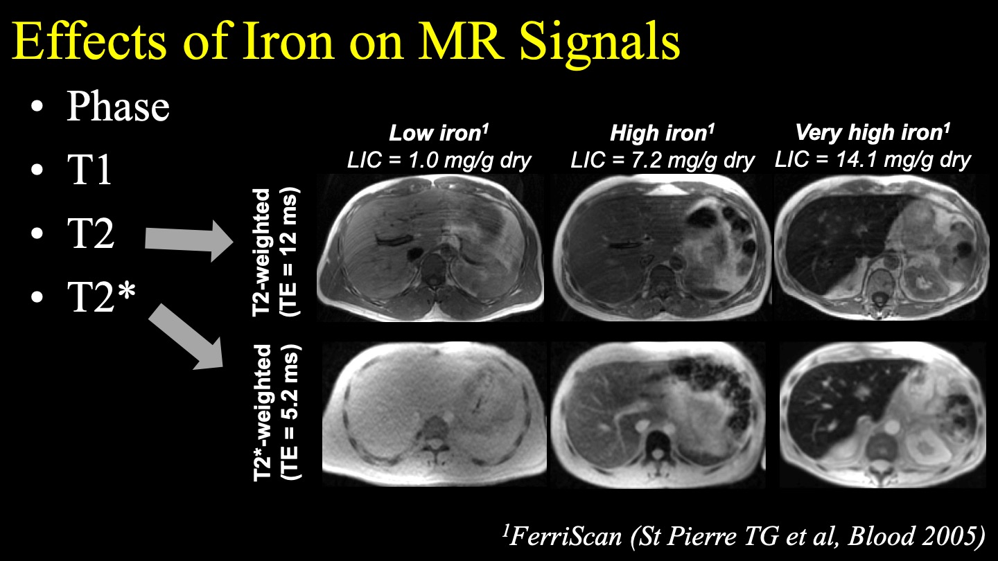 MR-based liver iron quantification has advanced in recent years, with results including reproducibility across centers and vendors, quantification at 3T, 1.5T, and 0.55T, free-breathing acquisition methods, artificial intelligence-based analysis, and evaluation of the relationships between various quantitative MR parameters. This lecture will briefly review the significance and seminal studies relevant to MR-based iron quantification, followed by new developments and results over the past 2-3 years. The lecture will close with a summary of the state of the art and remaining gaps and unmet needs.
